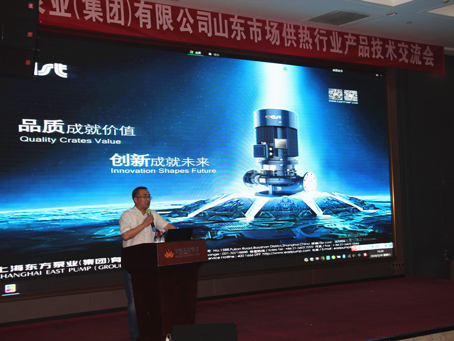 2020年5月30日,由上海東方泵業(yè)集團(tuán)供熱行業(yè)總部與濟(jì)南分公司承辦的2020年山東市場(chǎng)供熱行業(yè)產(chǎn)品技術(shù)交流會(huì),在長(zhǎng)清西城泉盈酒店三樓多媒體會(huì)議室隆重召開(kāi)。主持人為負(fù)責(zé)長(zhǎng)清片區(qū)業(yè)務(wù)主任譚韌,會(huì)議歷時(shí)三小時(shí),集團(tuán)公司供熱行業(yè)總部總經(jīng)理董超、副總經(jīng)理黃建華以及濟(jì)南分公司總經(jīng)理劉彥國(guó)、副總經(jīng)理生曉華、技術(shù)經(jīng)理王佰新出席了本次交流會(huì)議。參會(huì)嘉賓均為長(zhǎng)清區(qū)域設(shè)備制造龍頭企業(yè)35家公司,共計(jì)116名貴賓光臨本次交流會(huì)。