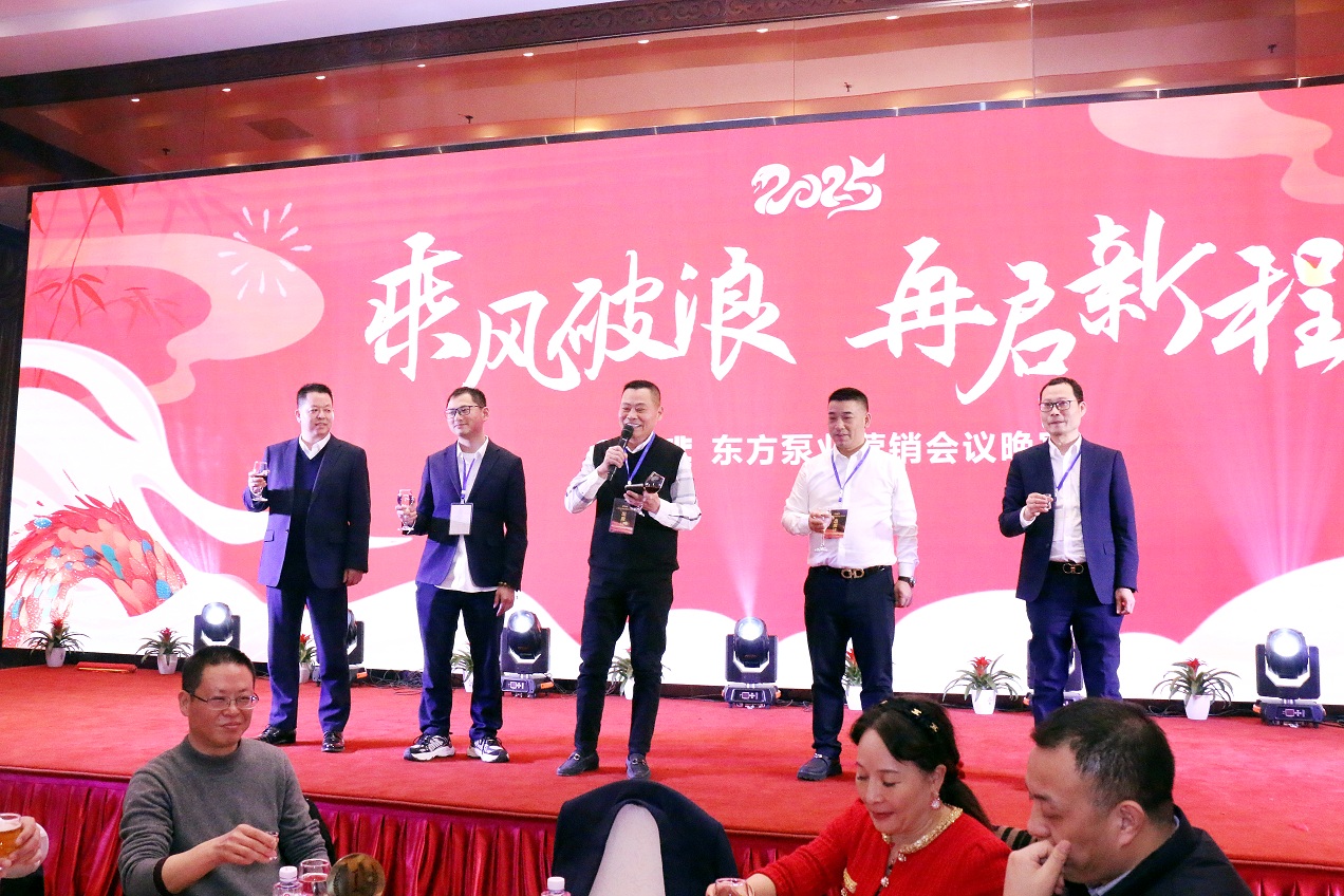 會(huì)議的最后是輕松、歡快的晚宴、抽獎(jiǎng)環(huán)節(jié)。集團(tuán)領(lǐng)導(dǎo)上臺(tái)祝酒,吳董發(fā)表了熱情洋溢的祝酒詞;現(xiàn)場(chǎng)同仁共同舉杯,共祝東方的美好明天!演藝團(tuán)隊(duì)帶來(lái)了精彩的助興表演,為晚會(huì)添彩;特別是為東方泵業(yè)特別訂制的傳統(tǒng)非遺節(jié)目口技模仿秀《東方泵業(yè)的春天》,博得了現(xiàn)場(chǎng)同仁的熱烈掌聲。