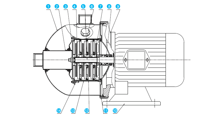 泵的使用參照加粗曲線(xiàn)的性能范圍,以防流量過(guò)小產(chǎn)生過(guò)熱和流量過(guò)大使用電機(jī)過(guò)載等。
