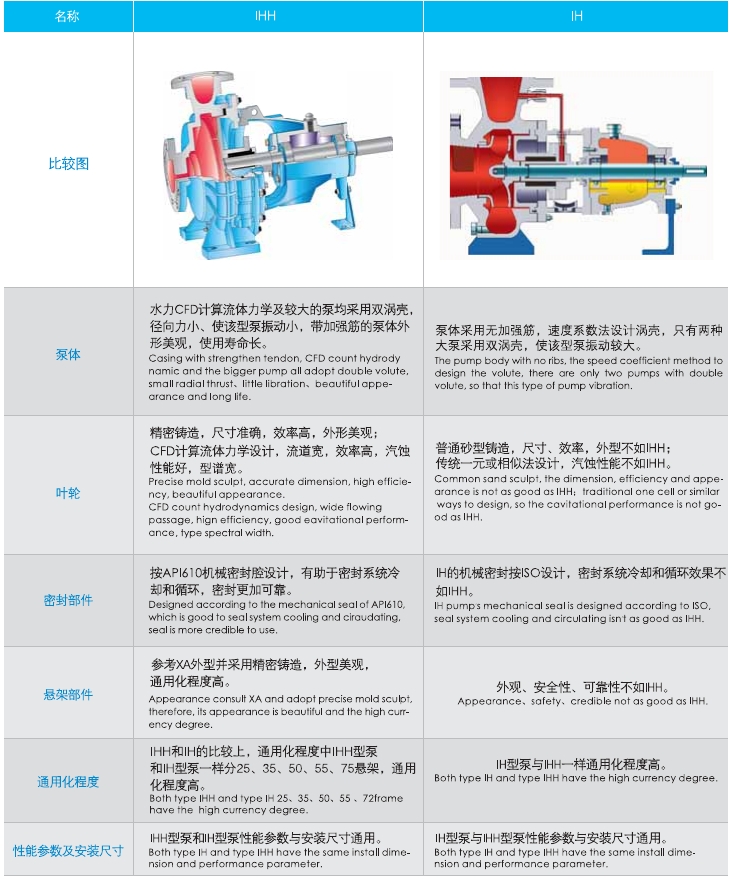 IHH與IH型泵結(jié)構(gòu)比較