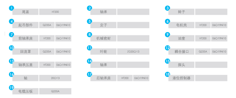 采用雙重機械密封和相應的油室結構,確保軸封安全。關鍵部位具有滲漏、缺相、過熱、過載等保護功能,確保整機運行的可靠性。