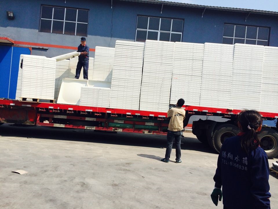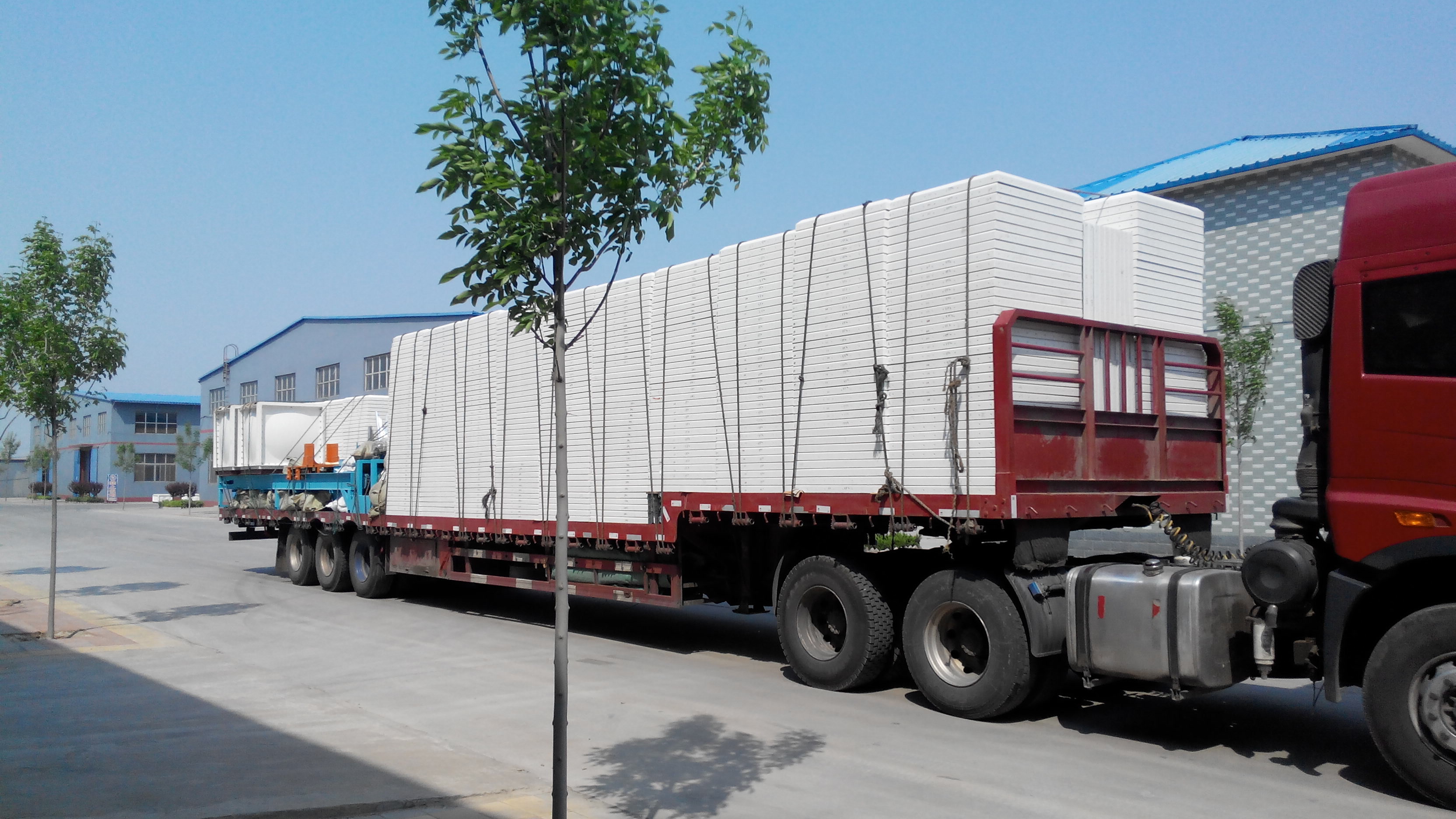 發往深圳的29臺玻璃鋼水箱裝車出發了