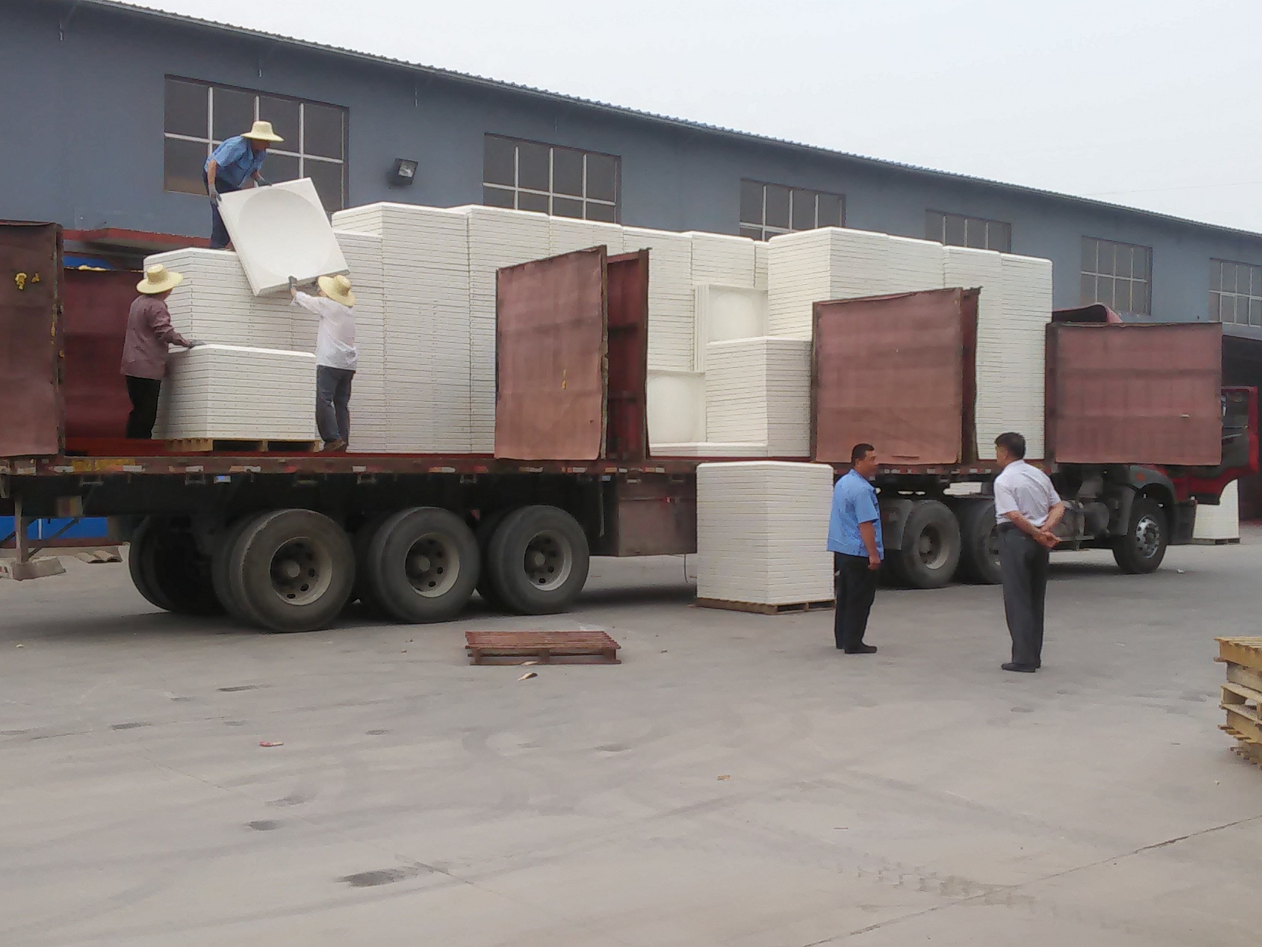 騰翔水箱發往東北的玻璃鋼水箱出發了