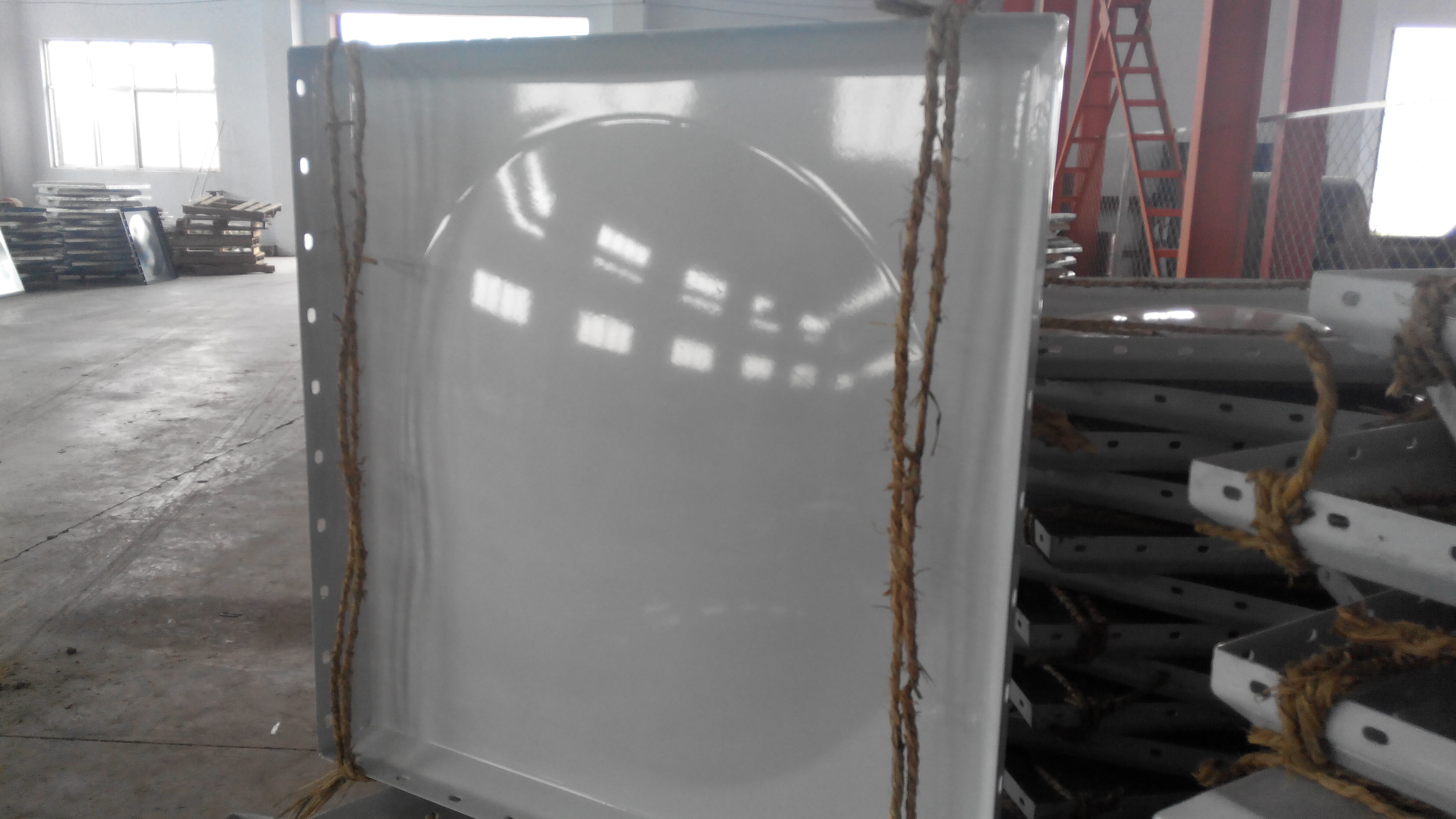 什么是噴塑鋼板水箱:噴塑鋼板水箱面利用靜電噴塑工藝進行特殊防腐處理生產的水箱板,強度高,顏色不易脫落,耐腐蝕、抗老化、外形美觀。每面均采用12個螺栓連接,增加了螺栓之間的密度,減少了水箱漏水的機會。現場組裝輕便,靈活,易清洗,折斷太陽光照射,不易滋生藻類,保持水質清潔。該水箱既能貯存冷水,也能貯存熱水、不易漏水、不易變形。噴塑水箱 產品采用Q235鋼板,沖壓形成1000*1000和1000*500,500*500的標準塊,周邊鉆孔,經表面利用靜電噴塑工藝進行特殊防腐處理生產的水箱板,現場進行組裝,組裝時標準塊之間橡膠墊,螺栓連接。