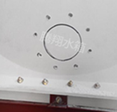 玻璃鋼水箱步:按照客戶提供的圖紙找出進水、出水、溢流、排污、氣孔的開口位置,畫上印作為標記,然后找準法蘭的角度與水箱板之間的凸面位置,放準為好,用鉛筆畫上印,在對準法蘭的螺栓口進行打孔,如以下示意圖: