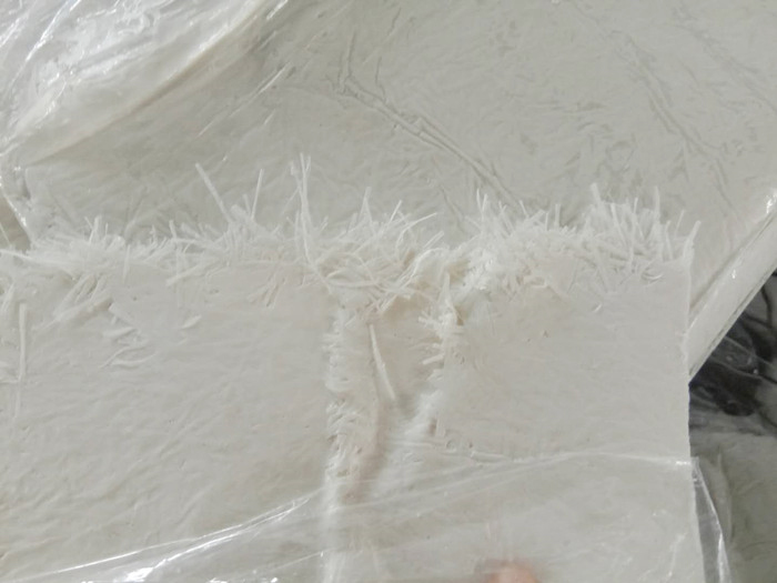 先,我們需要把不飽和樹脂和玻璃纖維等原材料混合形成片材。其樹脂的作用就好比是混凝土,纖維紗的作用就好比是鋼筋,兩者搭配才能使其更加堅固。形成片材的同時,成形的片材需要用塑料膜包住,起到保護作用。