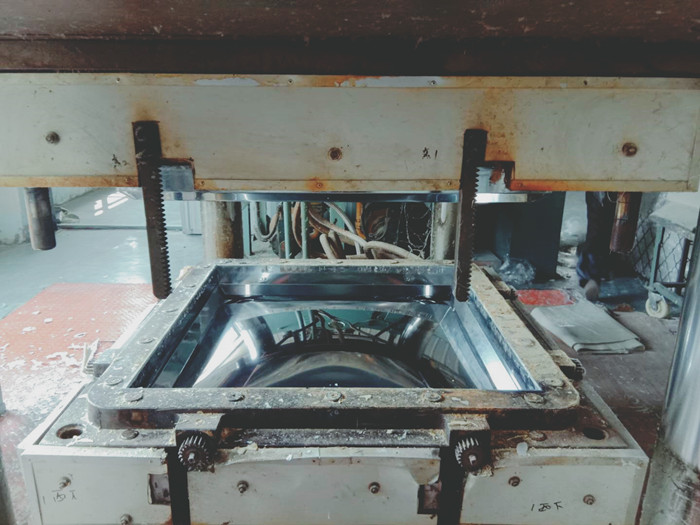 把稱重完成的片材放入模壓機內,經(jīng)過一定的高溫模壓,才能形成水箱板。而水箱板表面的光滑程度主要取決于水箱板磨具,故此,一個好的水箱磨具也是至關重要的,而水箱板的厚度決定了模壓的時間,水箱板越厚模壓時間越長。
