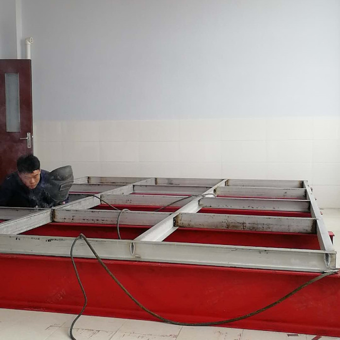 玻璃鋼水箱的槽鋼,都是采用了槽鋼焊接成網狀,除去銹后用環氧樹脂油漆進行刷過,做好了防腐的處理。玻璃鋼水箱下面的底板也是受壓平均. 板塊尺寸分別為1000×1000、1000×500和500×500三種尺度板塊,然后接上管就能使用,也在各個領域里面使用。