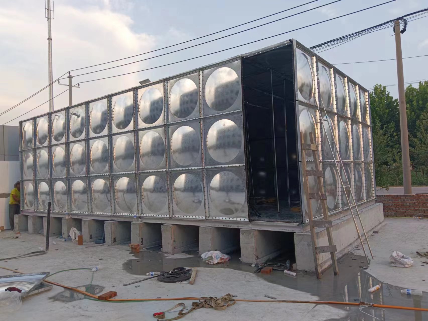 我廠承接的山東德州禹城市山東御景建筑一臺150立方鍍鋅板水箱經過六天的時間已經安裝試水完成。安裝現場圖如下:
