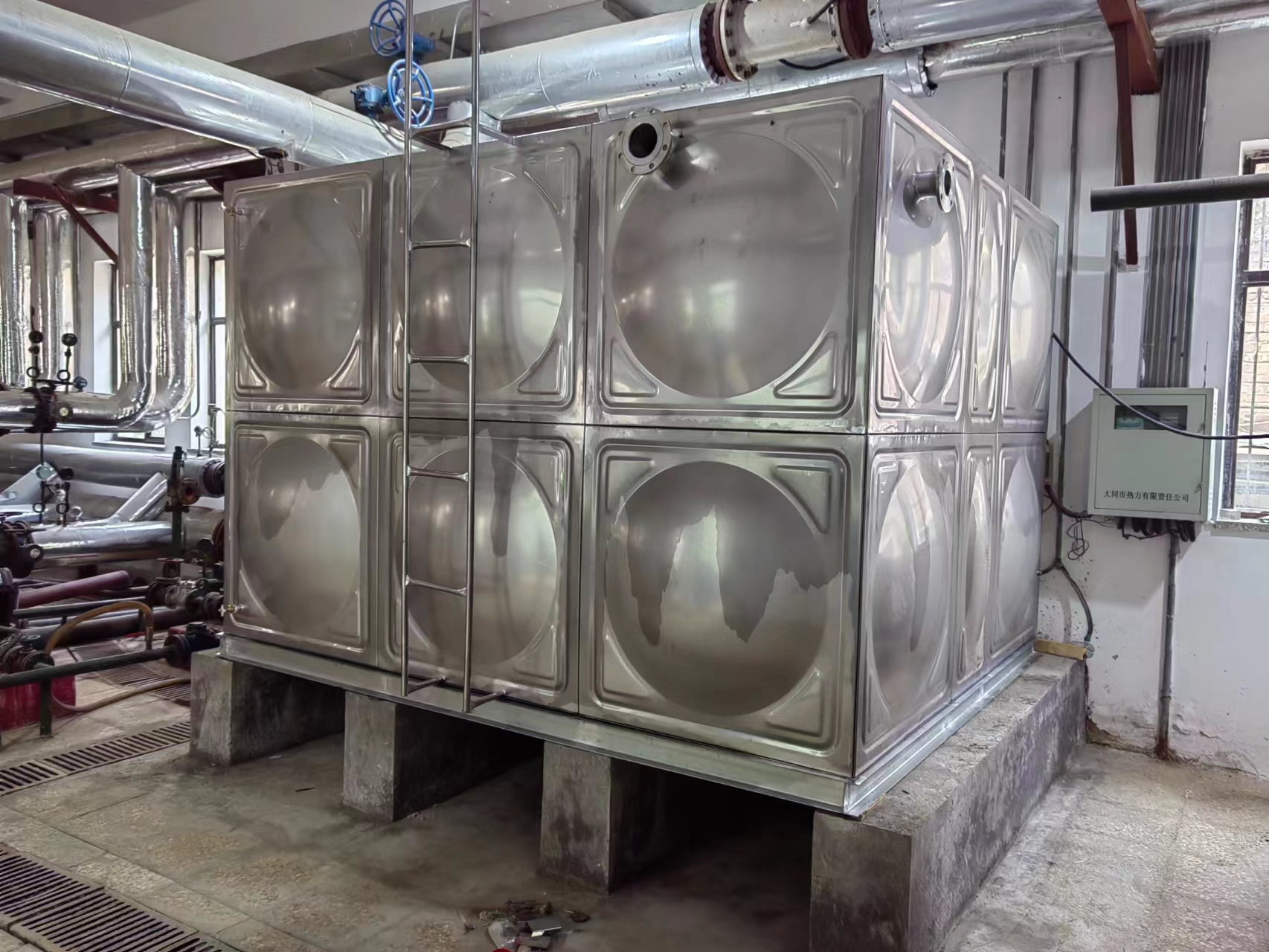 我廠承接的山西省大同市銀豪嘉園換熱站一臺15立方304不銹鋼水箱補水水箱已經安裝試水完成,客戶對我們的產品質量及安裝服務表示滿意和認可?,F場實拍照片如下: