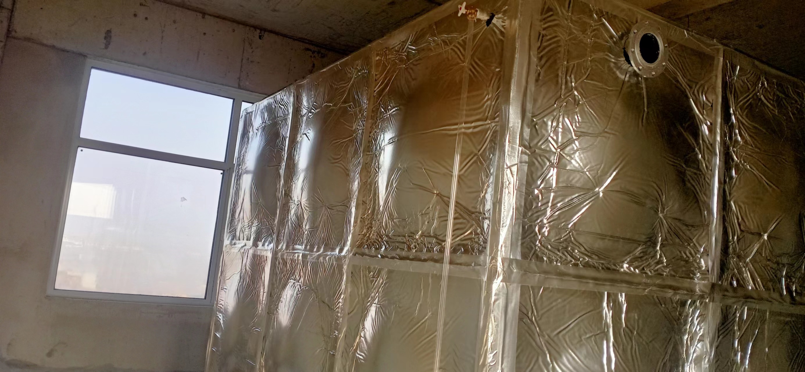 我公司承接的山東省濱州市無棣縣龍灣鎮醫院一臺24立方鍍鋅鋼板保溫水箱已經安裝完成。此次水箱采用的是橡塑鋁箔布保溫。實拍照片如下: