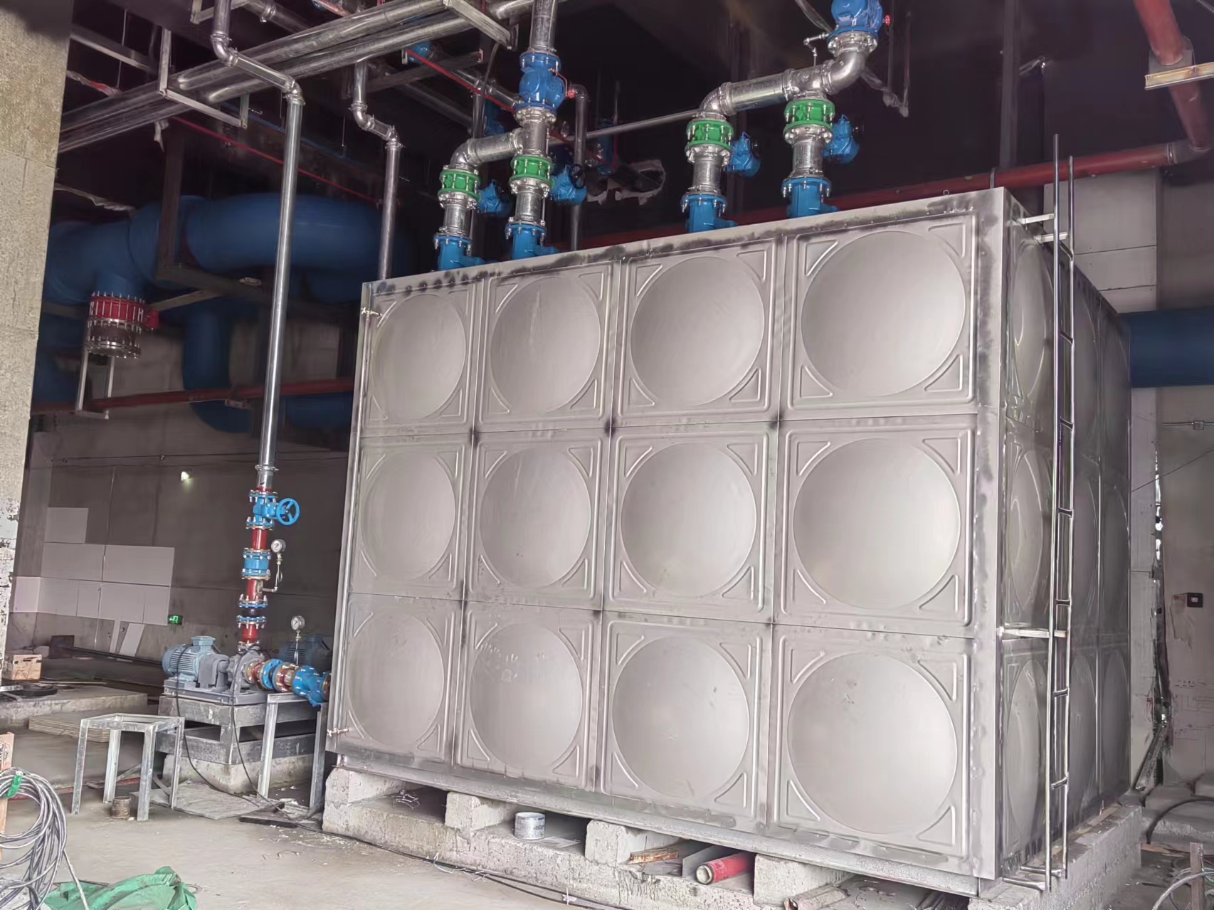 六、不滲漏:不銹鋼消防水箱鋼采用全焊組裝。與傳統的螺栓連接方式相比,省去了密封條和螺栓連接,使不銹鋼消防水箱整體強度更高,無滲漏。