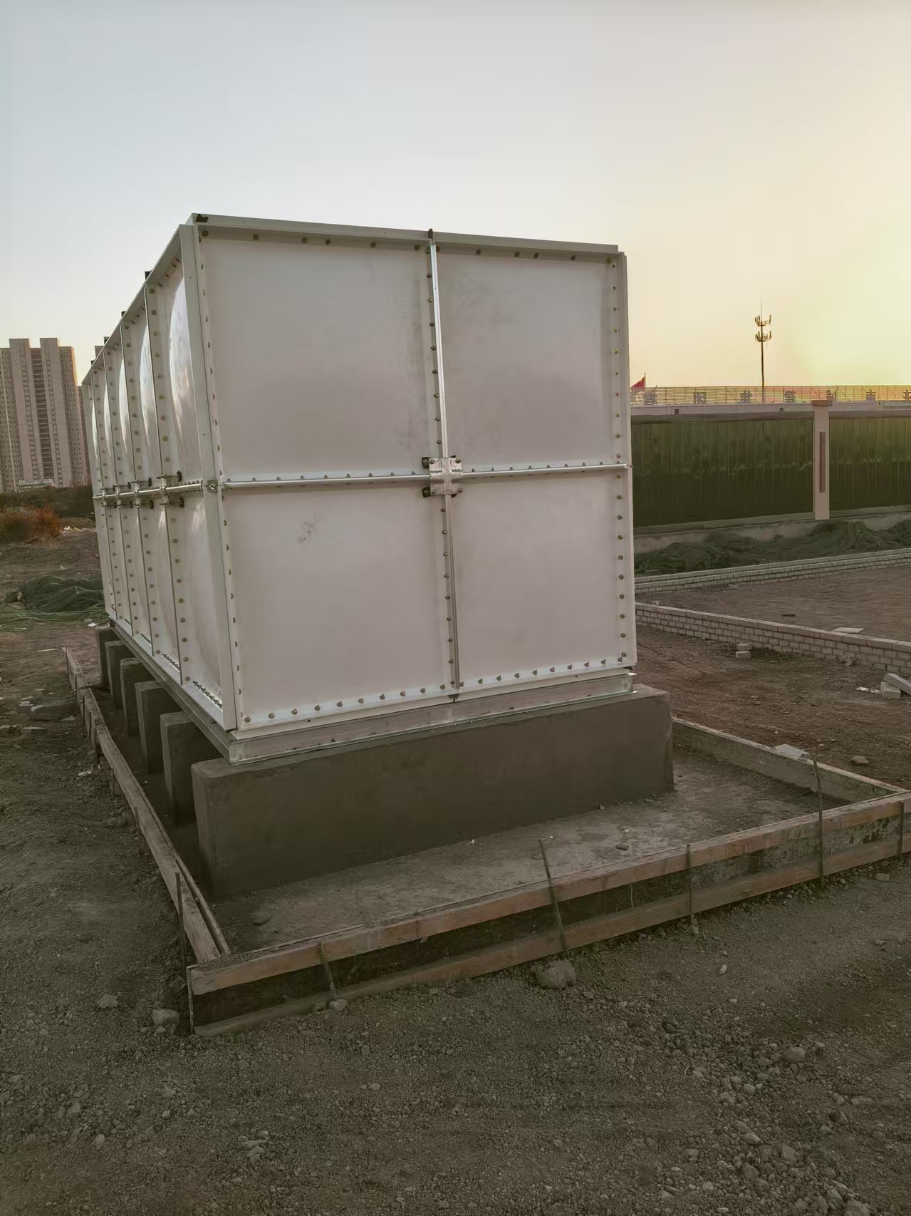 我公司承接的山東省濟(jì)南大園塘工地一臺(tái)20立方玻璃鋼水箱已經(jīng)安裝完成,客戶用做工地臨時(shí)用水箱使用,客戶對(duì)我司質(zhì)量及安裝表示滿意。現(xiàn)場(chǎng)實(shí)拍照片如下: